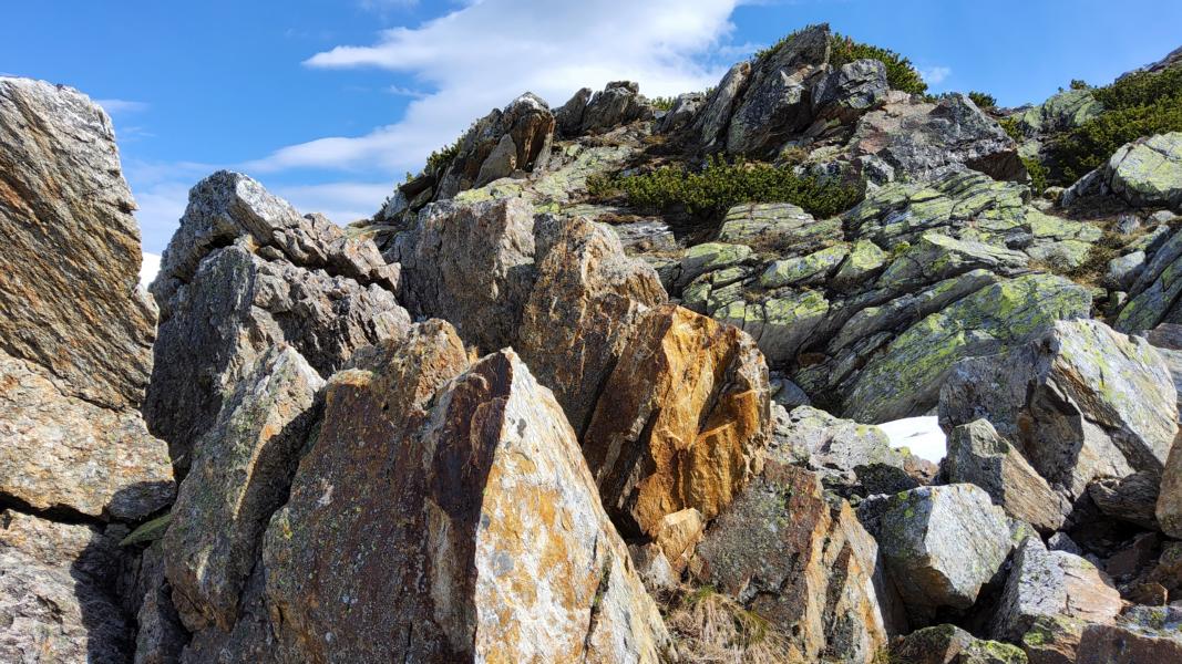 Die meisten Touristen nehmen sich nicht die Zeit, die geologischen Formationen genauer zu betrachten und sich an deren Form- und Farbenvielfalt zu erfreuen. Zwischen den aufgetürmten Steinmassen findet man auch wunderschöne Alpenpflanzen, die gleich nach der Schneeschmelze ihre Pracht zeigen.