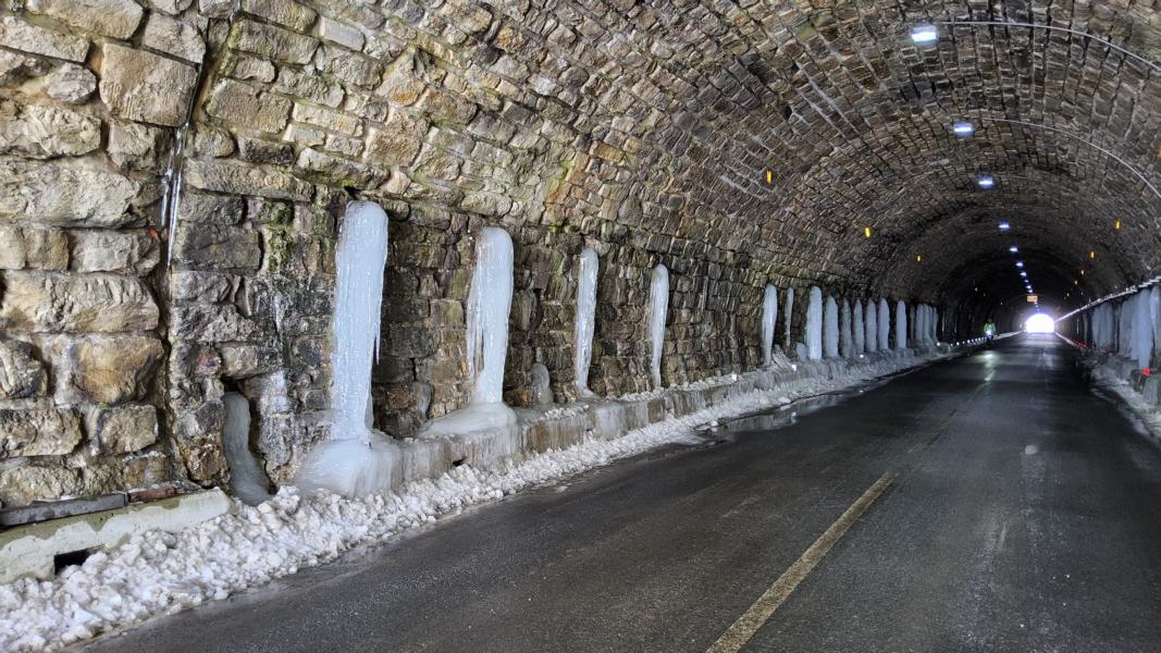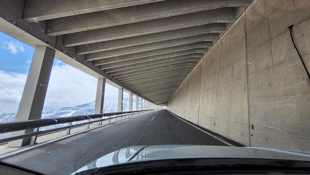 Um die Lawinengefahr auszuschalten, hat man Lawinentunnel errichtet. Abschüssiges Wasser wird unter der Straße weitergeleitet.