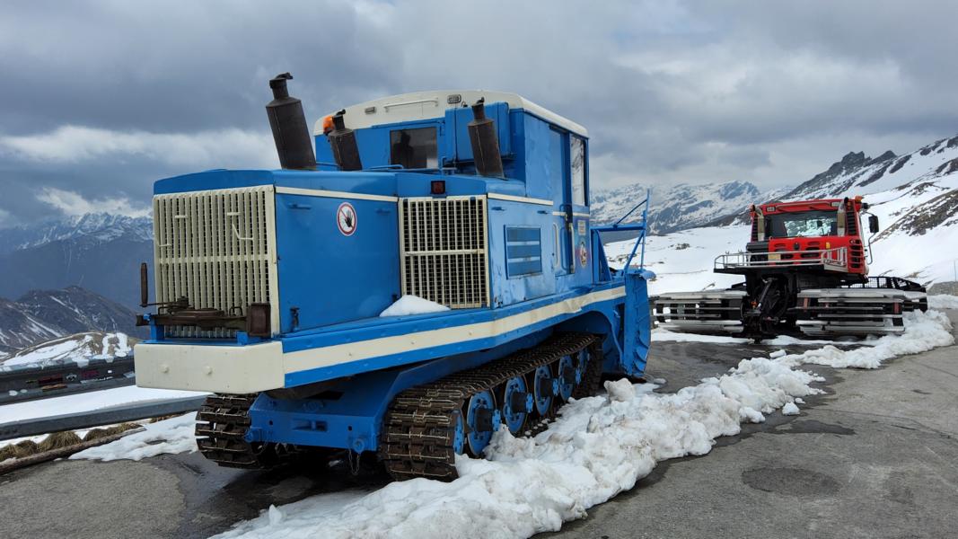 In dieser Höhe halten sich die Schneemassen am längsten. Mit moderner Technik wird die Straße geräumt.